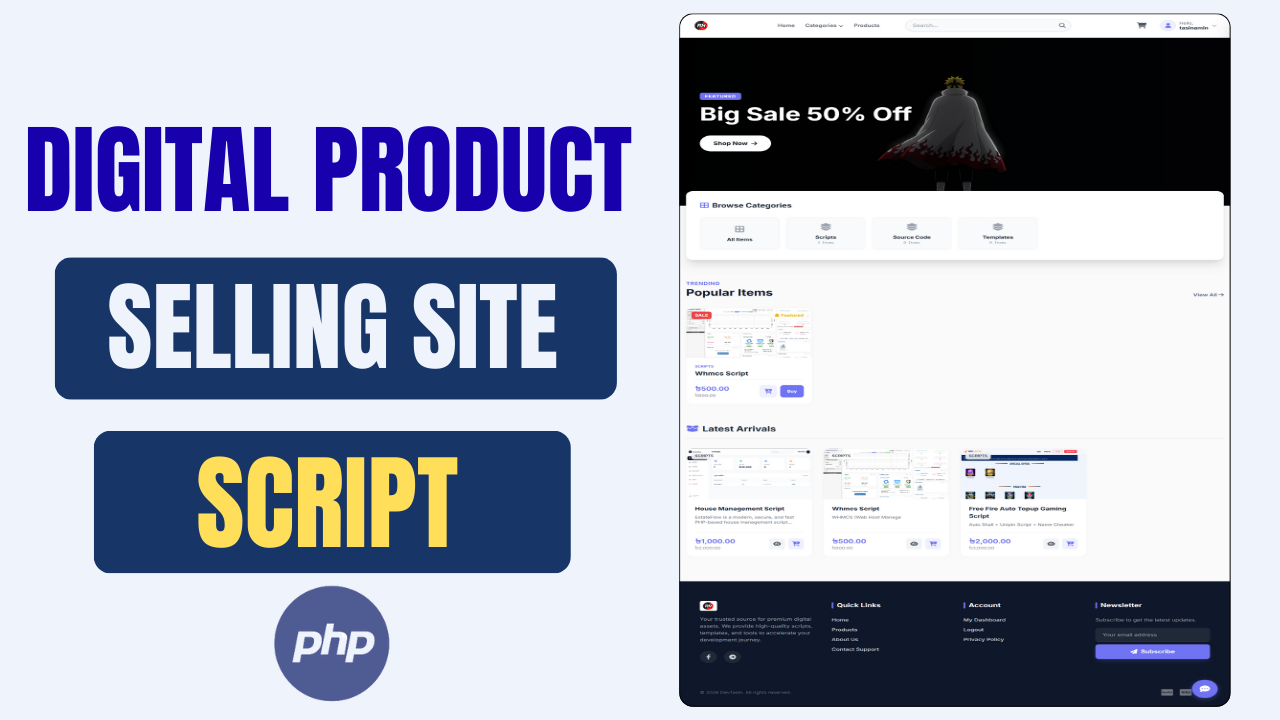 Php Based Digital Product Selling Website Script