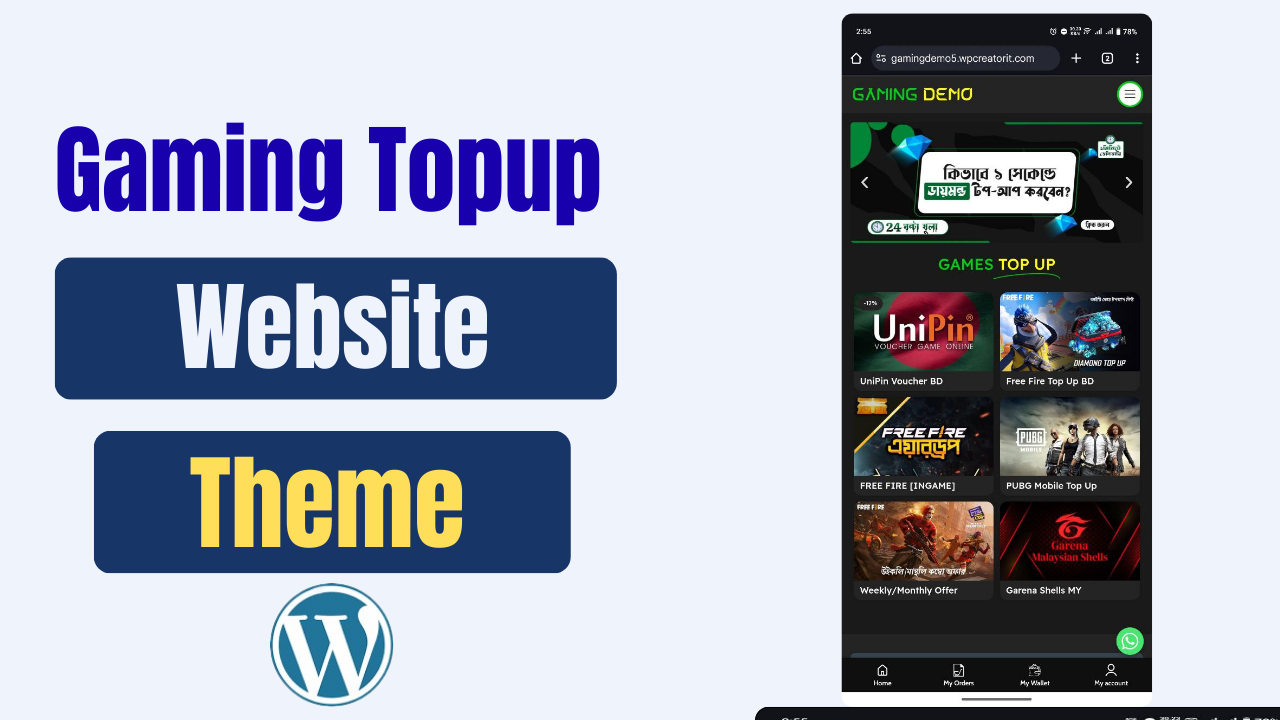 Wordpress Games TopUp, Visa, Gift Card, Digital Product Selling Website Code