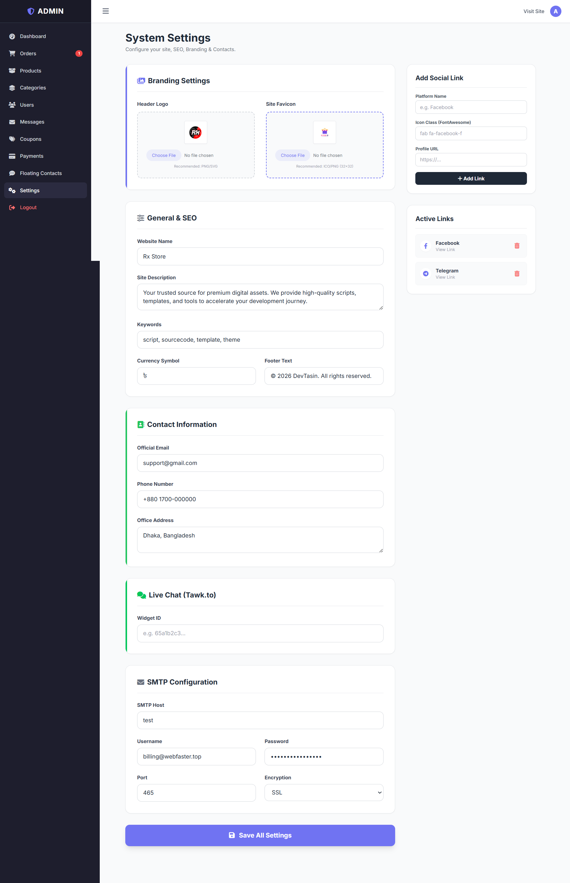 Branding: Upload Logo and Favicon directly from the admin panel.