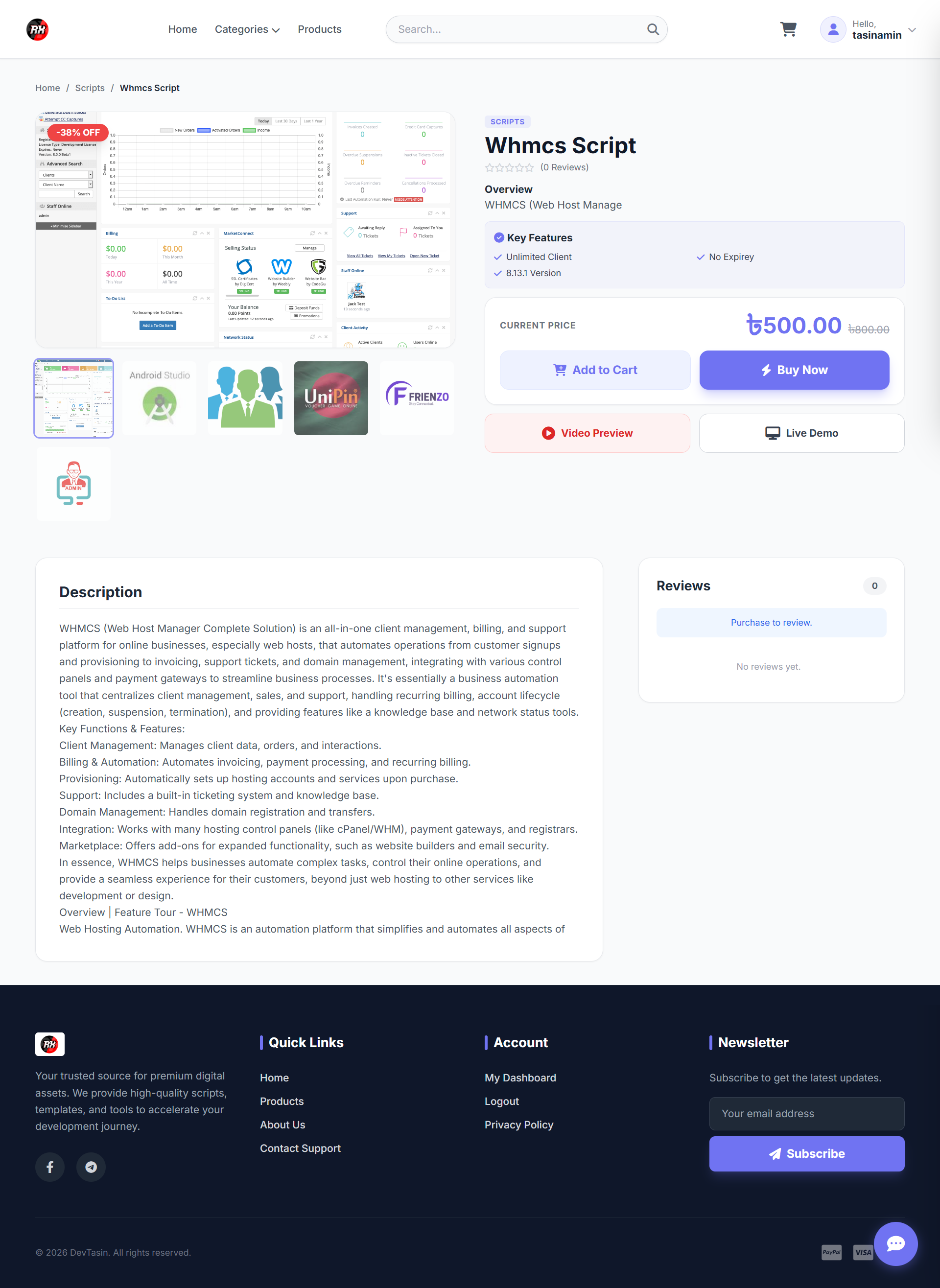 Secure File Delivery: The system hides actual file paths (storage/products/...) using a protected PHP handler, preventing unauthorized link sharing.